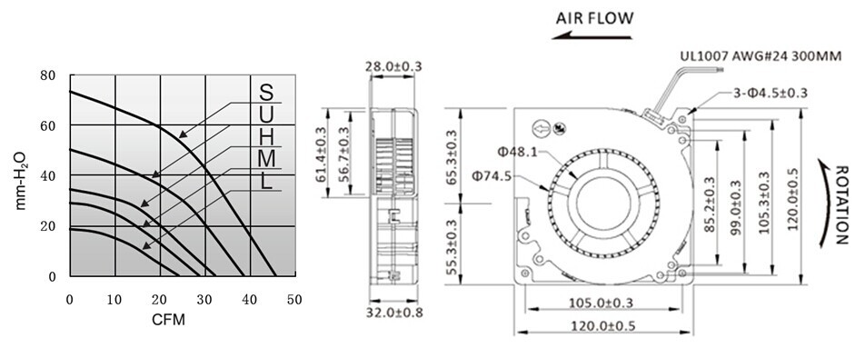 | SP120B12M-32DL | B/S | 12 | 7.0~13.2 | 0.66 | 7.92 | 2300 | 0.82 | 28.67 | 29.18 | 1.149 | 52.4 |