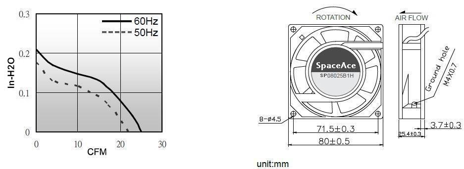 | SP80B22H-25AT | B/S | 220 | 50/60 | 12/11 | 2500/3000 | 0.62/0.71 | 17/21 | 4.5/5.3 | 0.18/0.21 | 28/29 |