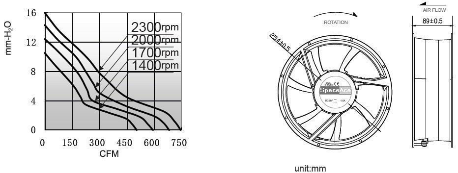| 型号 | B/S | V | V | A | W | RPM | m3/min | CFM | mm-H2O | In-H2O | dba |