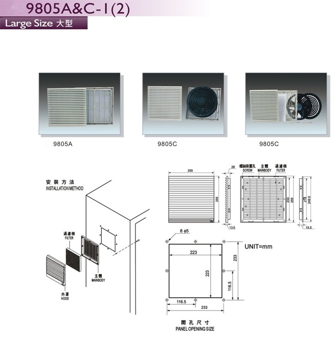 | 適 用 風 扇: | 200mm×200mm×60mm | ||