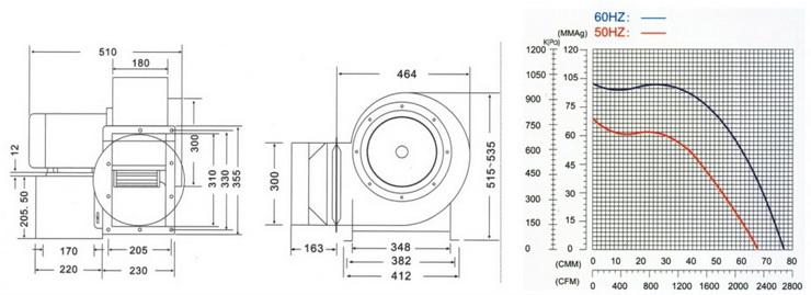 | 規格 | (V) | (HZ) | 1/3 | (A) | (W) | RPM | mmAq | Pa | CMM | m3/h | CFM | dbA |