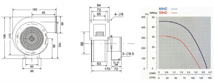 | 規格 | (V) | (HZ) | 1/3 | (A) | (W) | RPM | mmAq | Pa | CMM | m3/h | CFM | dbA |