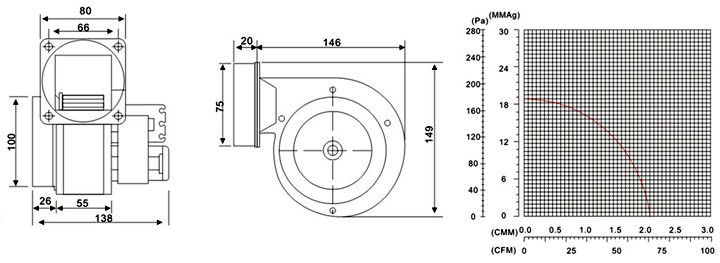 | 規格 | (V) | (HZ) | 1/3 | (A) | (W) | RPM | mmAq | Pa | CMM | m3/h | CFM | dbA |