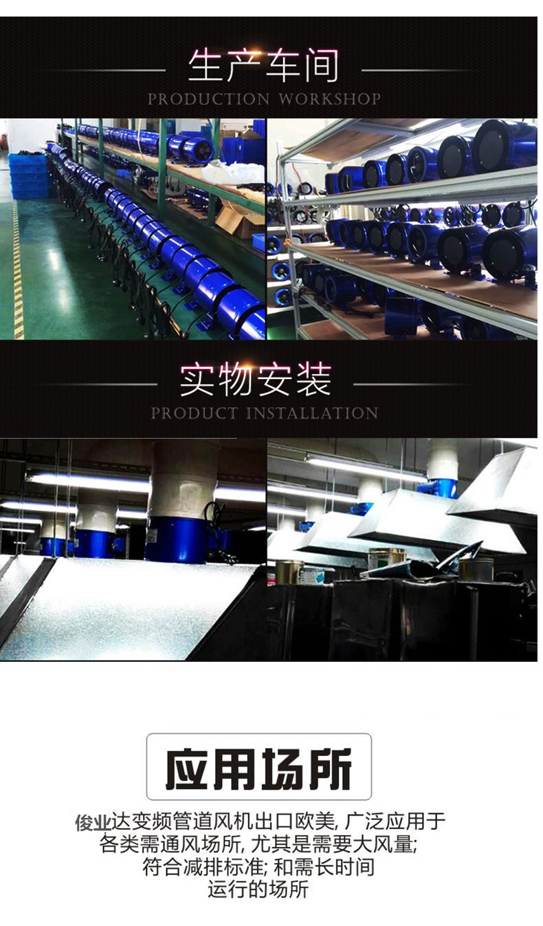 产品特性:以圆形管道风机为例:圆形管道风机采用机翼形后倾叶轮,高速运转时将气体流体力学发挥到极致,因此能效比非常高,可以达到80%,也就是说以最小的电机 功率输送最大的风力,这是普通前倾离心风机所不能达到的效果。因此管道风机既节能又大风。超高的风压可以接几十米的管道集中通风,管道风机主要特点 就是压力大。取代了传统的通风设备。风机无振动,动平衡值小于0.17g,只有这样的标准值才能保证风机的优越品质,进口金属叶轮配套或PBT环保防火材料 .按照机翼型灌注而成,其特点是刚性强、耐高温、环保、风量大、而且可以一定程度上减少噪音。