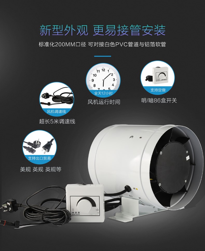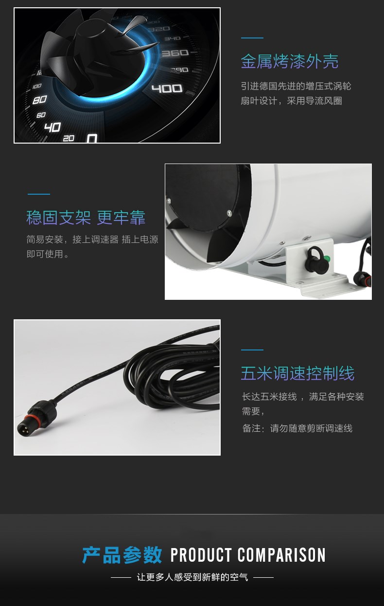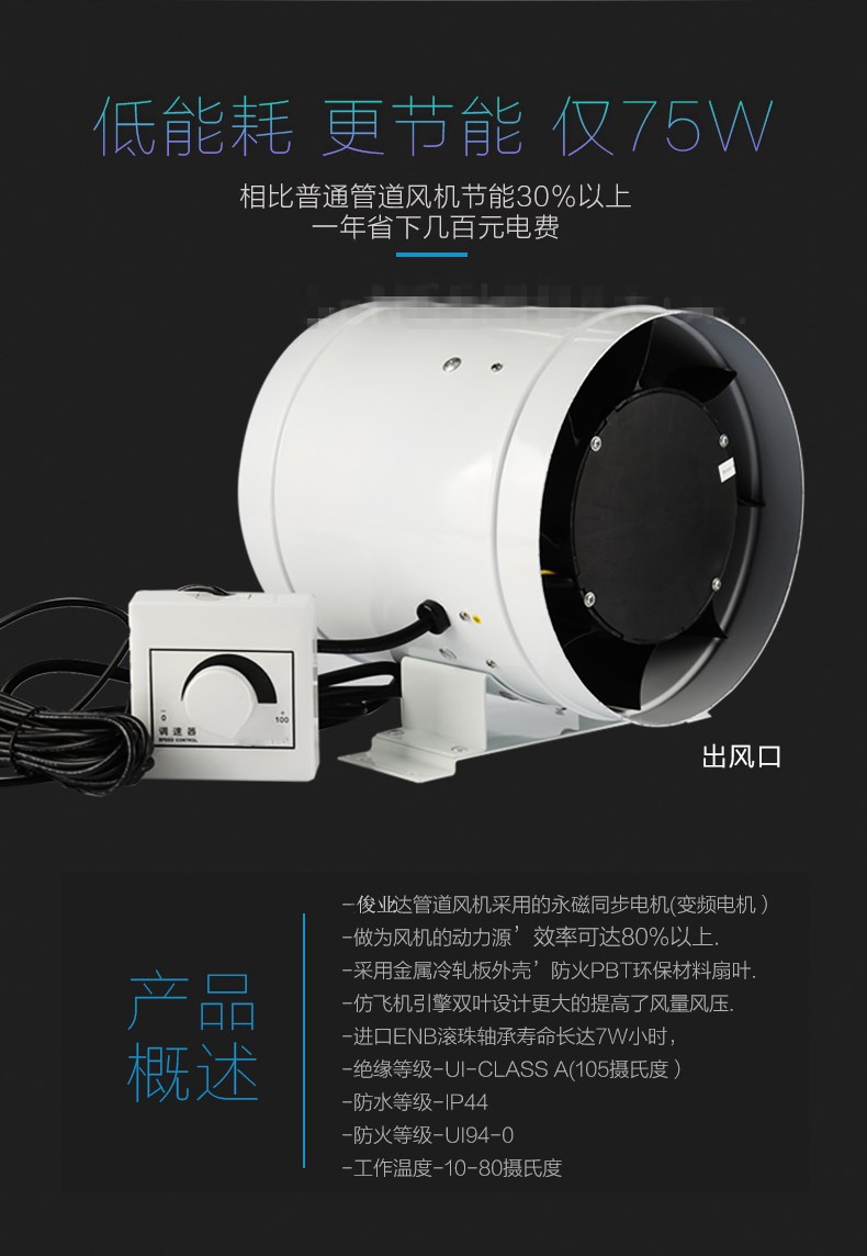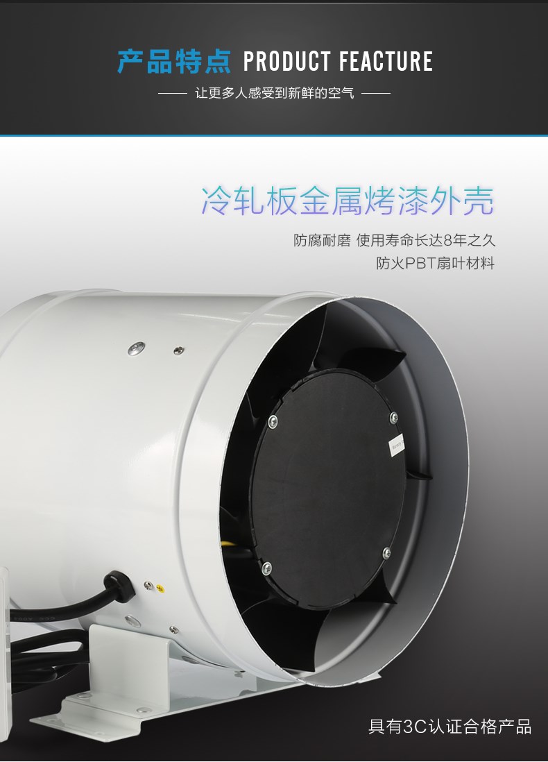 SP200管道风机新款产品特性:以圆形管道风机为例:圆形管道风机采用机翼形后倾叶轮,高速运转时将气体流体力学发挥到极致,因此能效比非常高,可以达到80%,也就是说以最小的电机 功率输送最大的风力,这是普通前倾离心风机所不能达到的效果。因此管道风机既节能又大风。超高的风压可以接几十米的管道集中通风,管道风机主要特点 就是压力大。取代了传统的通风设备。风机无振动,动平衡值小于0.17g,只有这样的标准值才能保证风机的优越品质,进口金属叶轮配套或PBT环保防火材料 .按照机翼型灌注而成,其特点是刚性强、耐高温、环保、风量大、而且可以一定程度上减少噪音。