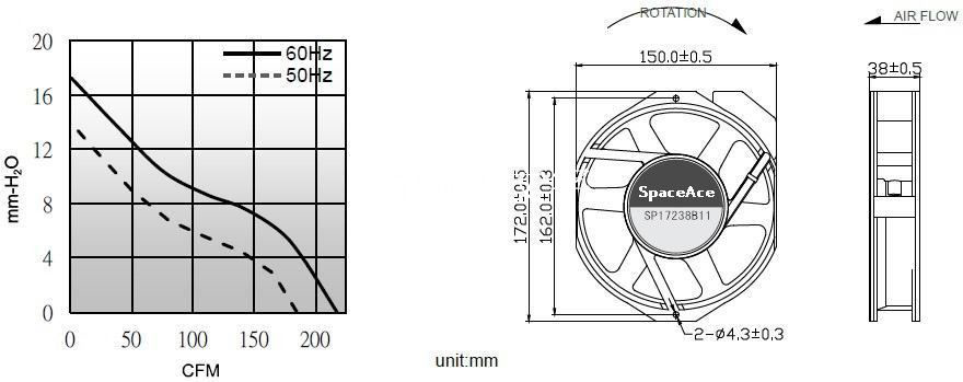 | SP172B22H-38AL | B / S | 220 | 50/60 | 35/32 | 2700/3000 | 5.09/5.66 | 180/200 | 9.6/12.2 | 0.38/0.48 | 50/52 |
