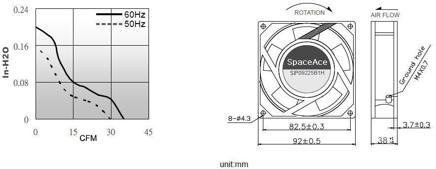 | SP92B22H-38AL | B / S | 220 | 50/60 | 9/12 | 2200/2700 | 1.27/1.55 | 45/55 | 4.0/5.0 | 0.16/0.20 | 37/41 |