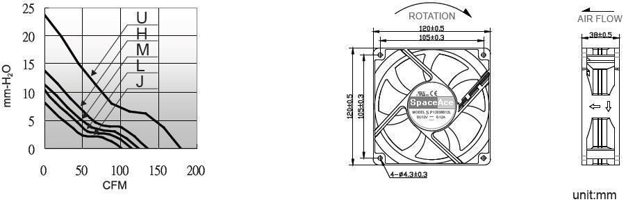 | SP120B12U-38DL | B / S | 12 | 7.0~13.2 | 1.41 | 16.92 | 4200 | 5.05 | 178.4 | 23.8 | 0.94 | 54.0 |